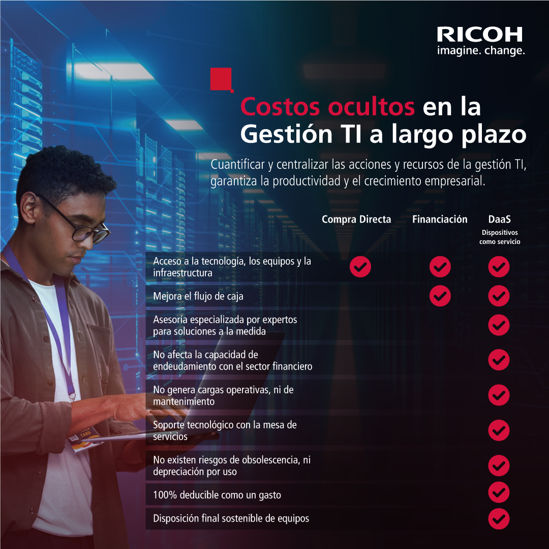 Ricoh Device as a Service es un servicio que permite obtener dispositivos de alta calidad y servicios de soporte de confianza sin preocuparse por el costo.