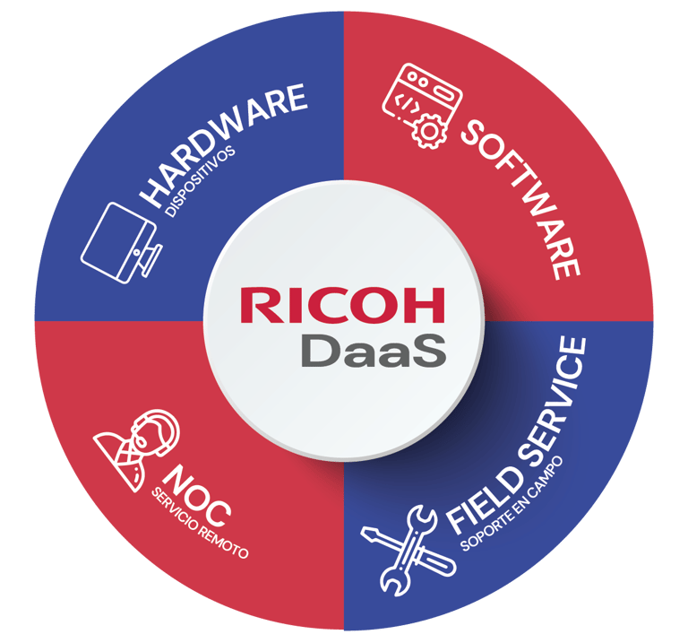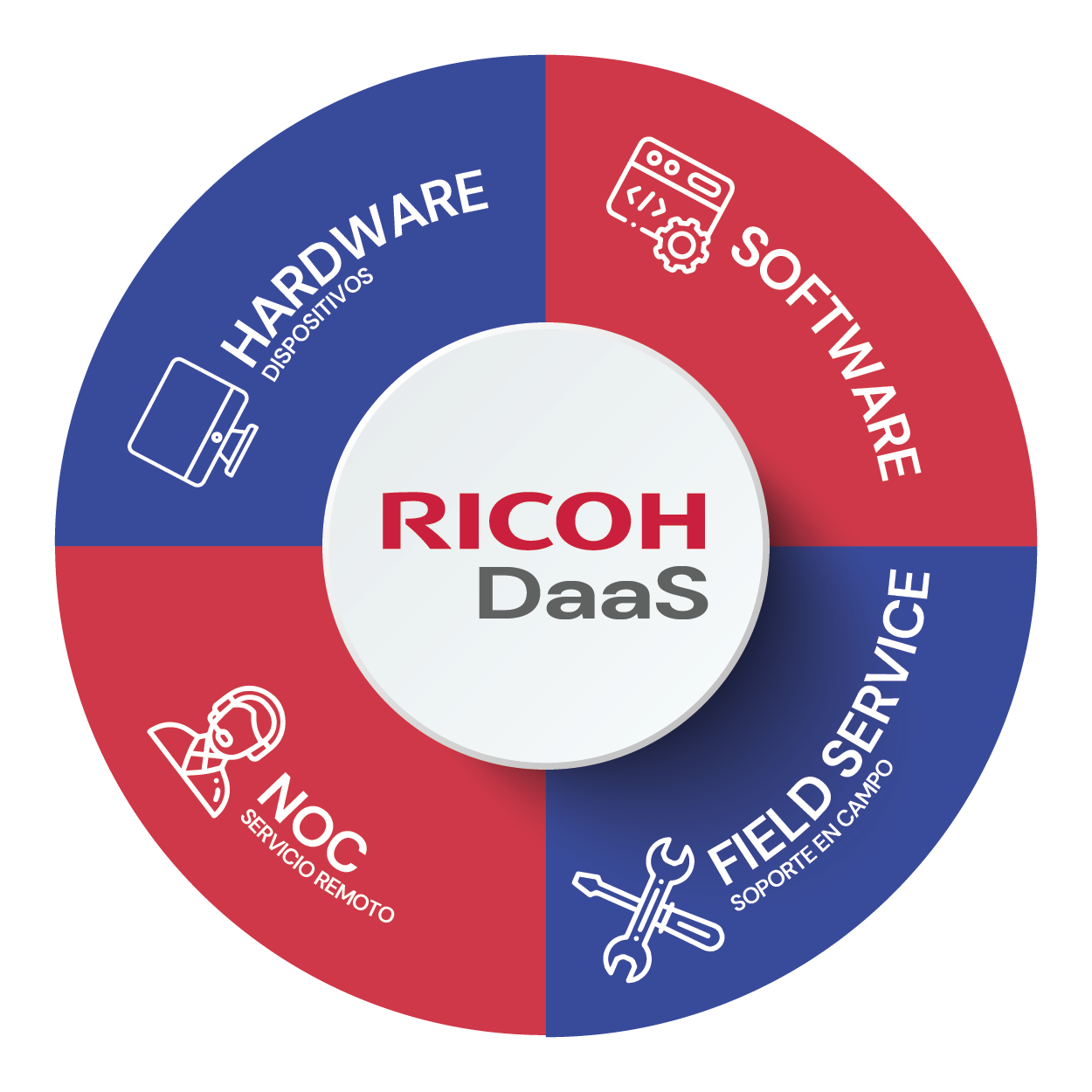 RICOH DaaS es un servicio inteligente, centralizado, flexible e integral que combina hardware, software, administración, mantenimiento, servicio y soporte de sus dispositivos, permitiendo que los departamentos de IT reduzcan su carga diaria en la gestión de dispositivos y puedan innovar y enfocar sus esfuerzos en lo que es importante: su negocio.